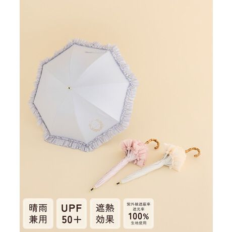 ボリュームたっぷりのフリルが目を引く、大人可愛いショート丈の長傘。