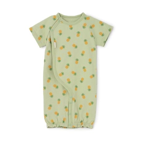 豊富なカラー展開でデイリーに使い分けしやすい半袖カバーオールです。フルーツや恐竜など、それぞれ異なる可愛らしいモチーフがデザインされています。紐とボタンの二重構造で、しっかりと固定できるのも魅力。成長に合わせてドレス型とパンツ型に着方を変えられます。新生児期から生後6カ月弱まで、長く活躍するアイテムです。【おすすめの着用時期は春夏シーズン】