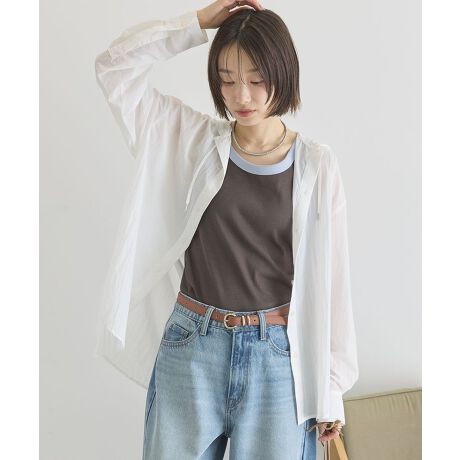 さらっと着られる軽やかフーディーデザイン軽量感のあるナイロン素材で仕立てた、フーディーデザインのシャツです。やわらかな風合いと軽やかな着心地で、日常のコーディネートに取り入れやすいのが魅力です。フード付きのデザインが程よいアクセントになり、シンプルなスタイリングでもこなれた雰囲気を演出します。一枚でトップスとして着るだけでなく、ボタンを開けて羽織として使えば、軽やかなレイヤードスタイルも楽しめます。ゆとりのあるシルエットで動きやすく、体のラインを自然にカバーしながらリラックス感のある着こなしを叶えます。パンツスタイルはもちろん、スカートとも相性が良く、大人カジュアルなコーディネートにぴったりです。デイリーからお出かけまで幅広く活躍する便利なアイテムです。透け感[ややあり]
