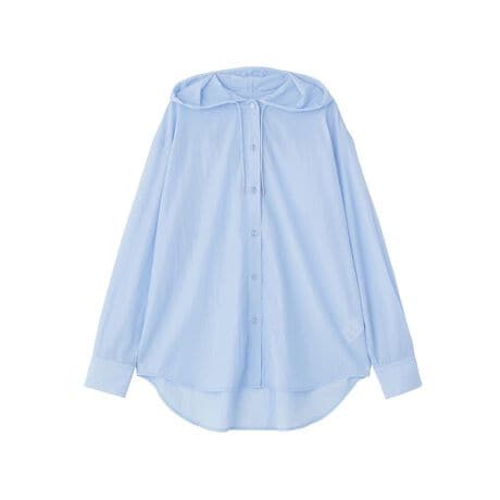 さらっと着られる軽やかフーディーデザイン軽量感のあるナイロン素材で仕立てた、フーディーデザインのシャツです。やわらかな風合いと軽やかな着心地で、日常のコーディネートに取り入れやすいのが魅力です。フード付きのデザインが程よいアクセントになり、シンプルなスタイリングでもこなれた雰囲気を演出します。一枚でトップスとして着るだけでなく、ボタンを開けて羽織として使えば、軽やかなレイヤードスタイルも楽しめます。ゆとりのあるシルエットで動きやすく、体のラインを自然にカバーしながらリラックス感のある着こなしを叶えます。パンツスタイルはもちろん、スカートとも相性が良く、大人カジュアルなコーディネートにぴったりです。デイリーからお出かけまで幅広く活躍する便利なアイテムです。透け感[ややあり]