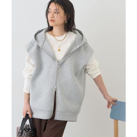 軽やかレイヤードが楽しめるフーディーベスト滑らかなポンチ素材で仕立てた、軽やかな着心地のフーディーベストです。ほどよい厚みとやわらかな質感で、カジュアルな中にも大人らしい上品な雰囲気を演出します。フード付きのデザインがスタイリングに抜け感を与え、シンプルなコーディネートにさりげないアクセントをプラスしてくれるのが魅力です。フロントはダブルジップ仕様になっており、開け方を調整することでシルエットに変化をつけた着こなしが楽しめます。カットソーやブラウス、ワンピースなどに重ねるだけでレイヤードスタイルが完成し、普段のコーディネートをぐっとおしゃれに引き立ててくれます。パンツスタイルにもスカートスタイルにも合わせやすく、季節の変わり目にも活躍する便利なアイテムです。透け感[なし]