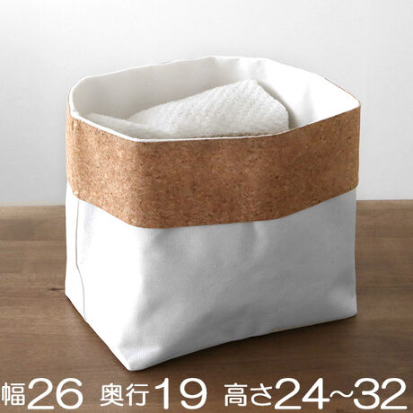 [型番:289748]【デザイン】●収納したまま持ち運ぶことができます。●ナチュラルなデザインだからどんなお部屋にも馴染みます。●布製だから折り畳めて持ち運びも簡単です。●衣類や食材、使い方は自由自在です。【スペック】サイズ/約幅26×奥行18.5×高さ32cm 内容量/1個 材質/綿、ポリエステル、コルク(PE加工) 生産国/中国製