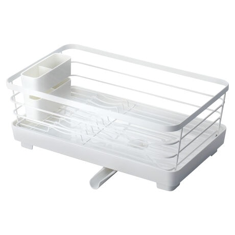 ●水が流れるトレー付きのスリムな水切りカゴです。