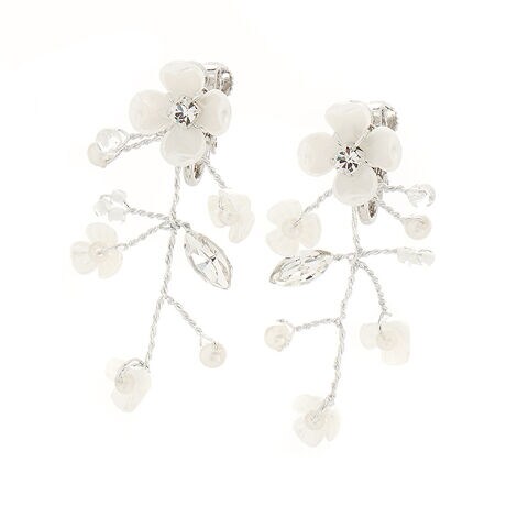 ビジューとパールを組み合わせた美しいフラワーデザインが特徴的なイヤリング。どんなスタイルにもマッチしやすい魅力的なアクセサリーです。パールの艶やかさと、ビジューの輝きが顔周りを華やかに演出し、特別な気分にさせてくれます。普段使いからパーティーやお呼ばれまで幅広いシーンでご活躍いただけます。