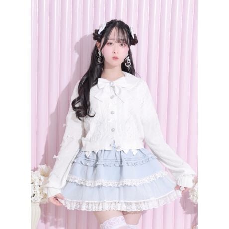 フロントや袖にあしらったリボンとハートモチーフボタンが甘さを引き立て、可憐な印象を演出します。