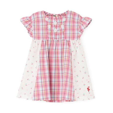 チェックとドビー織のプリントを組み合わせたワンピース。