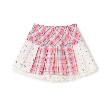 チェックとドビー織プリントを組み合わせたプリーツ仕様のスカパンです。
