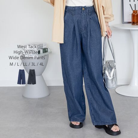 ウエストタックハイウエストワイドデニムパンツ
