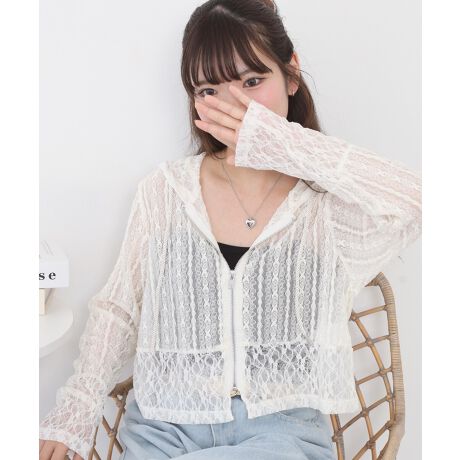 レース切替フードシャツブルゾン レディース
