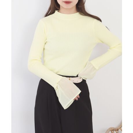 シアーカフスフレアスリーブハイネックニットプルオーバー レディース