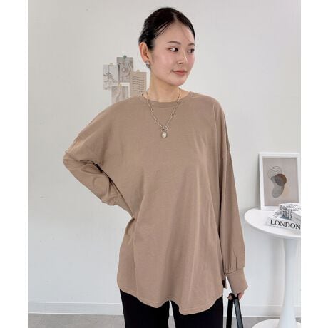 上質な綿100%の天竺生地を使用した、オーバーサイズの裾ラウンドカットソー。