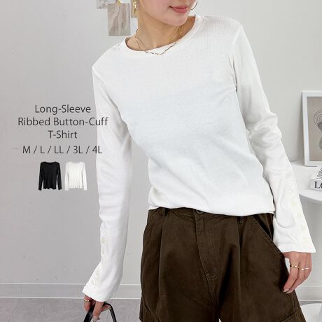 袖口ボタンリブロングTシャツ レディース 大きいサイズ