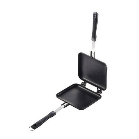 [型番:302978]【デザイン】●パンと具材をはさんで焼くだけでホットサンドが作れます。●朝食、おやつ、ランチタイムや、キャンプなどのアウトドアにもオススメです。●直火ならではのあつあつ・カリカリの美味しさが楽しめます。●本体はフッ素樹脂加工なのでお手入れ簡単です。【スペック】サイズ/約幅15×奥行35×高さ3.2cm重量/約350g内容量/1個材質/本体:アルミニウム合金・フッ素樹脂加工ハンドル・フェノール樹脂生産国/中国製熱源/ガス火専用