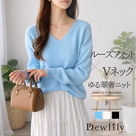すっきりとしたVネックデザインが印象的なニットトップス。