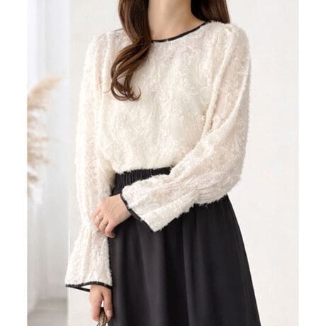 シンプルなボトムと合わせても華やかに見えるディテールです!