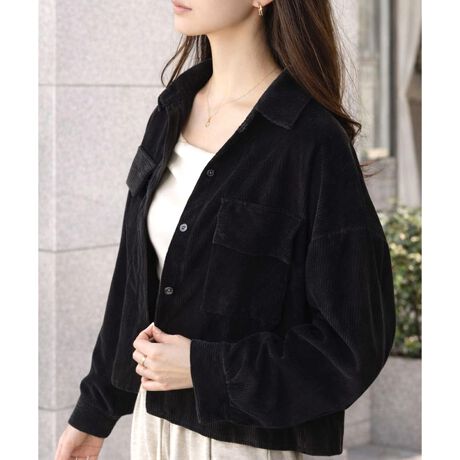 コーデュロイ風クロップドシャツ