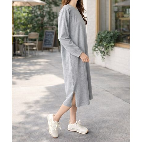 ベーシックなクルーネックデザインのロング丈カットソーワンピース。