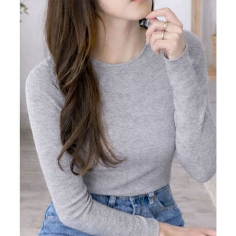 無駄のないクルーネックと細リブの表情が上品な雰囲気を演出します。
