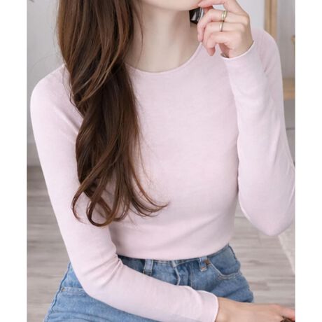 無駄のないクルーネックと細リブの表情が上品な雰囲気を演出します。