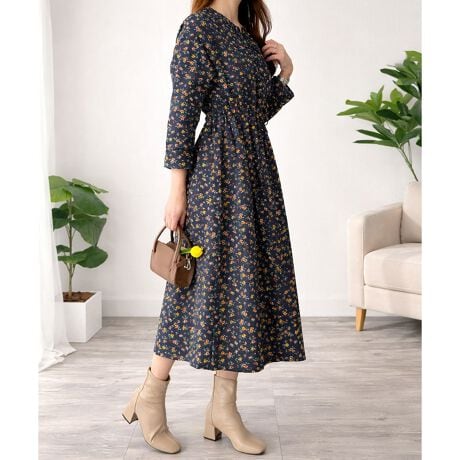 クラシカル小花柄ロングワンピース