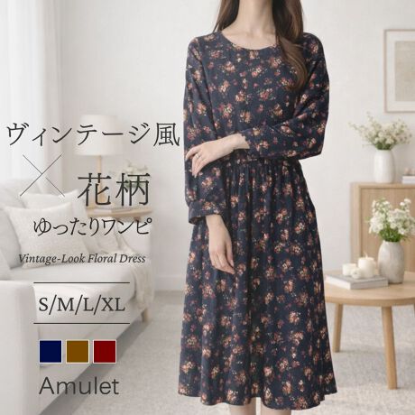 ヴィンテージライク花柄ワンピース
