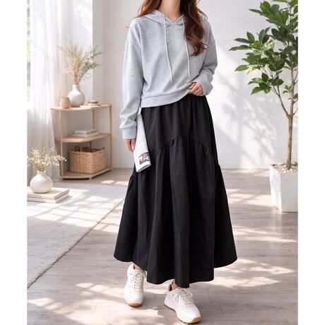 ボリュームフレア切替ロングスカート
