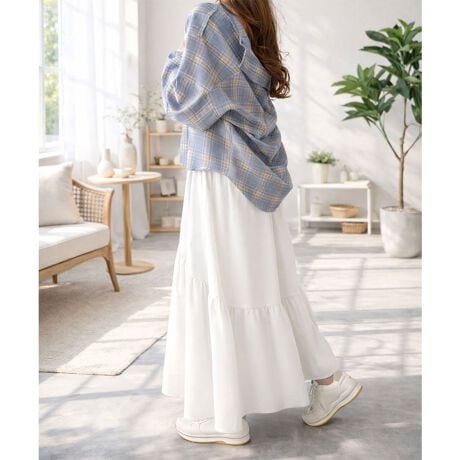 ボリュームフレア切替ロングスカート