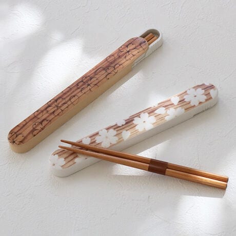 箸箱セット HAKOYA 桜木目 スクエア 黒炭 箸 箸箱 ケース 18cm