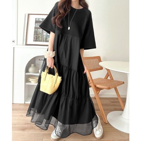 Tシャツにチュールロングスカートをドッキングした春夏にぴったりな1枚☆
