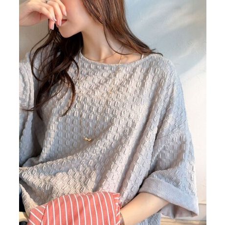 膨らみのあるカットジャガード素材を使用した半袖プルオーバー♪