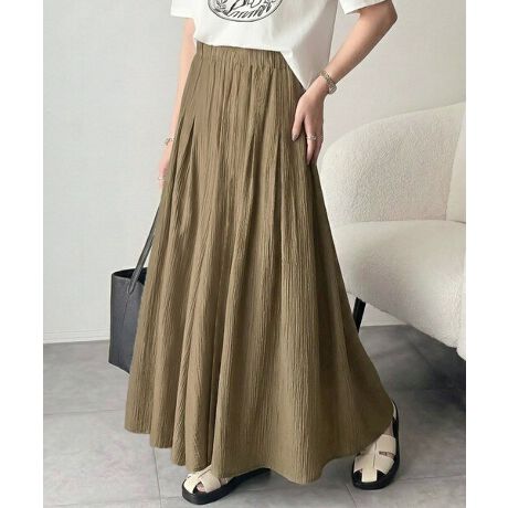 ウエストはゴム仕様、タックが裾の広がりを抑え上品なシルエットを演出◎