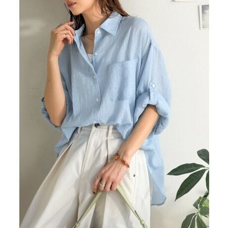 上品な抜け感を演出するシャンブレー素材のオーバーシャツ♪