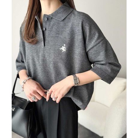 ・ポロニットデザインを採用・胸元に刺繍ロゴを配置・ゆったりとしたシルエット設計