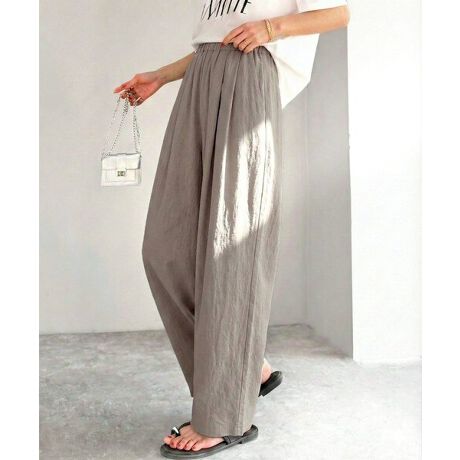 麻調のレーヨンナイロン素材を使用しており、涼しげな穿き心地。