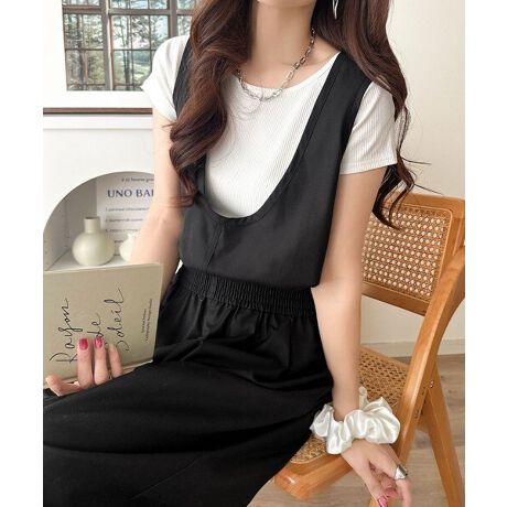 《JaVaジャバコラボ》前後で印象チェンジ♪前後2wayUネックツータックイージーサロペットパンツ