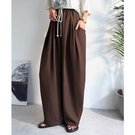 ふんわり軽いサッカー素材と、ウエストゴム&ひも仕様で