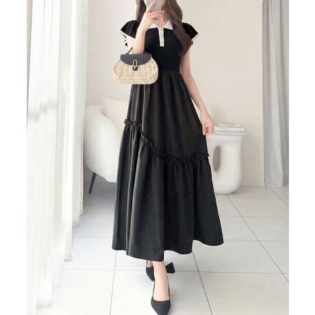 きちんと感のあるポロ襟が甘くなりがちなフレアワン