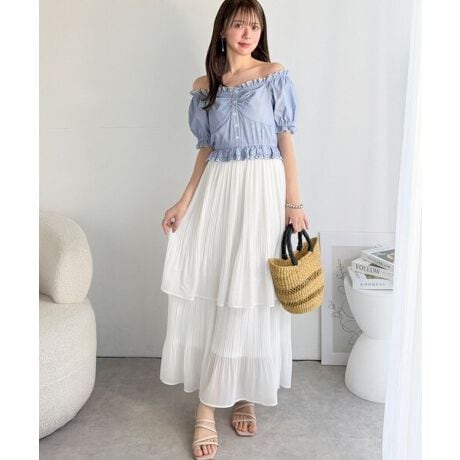 シアー感のあるジョーゼットスカートを組み合わせた、
