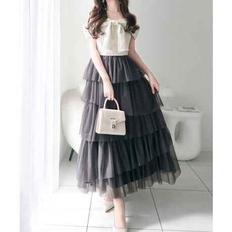 大きなリボンと贅沢なチュールが目を引く主役級ワンピ。