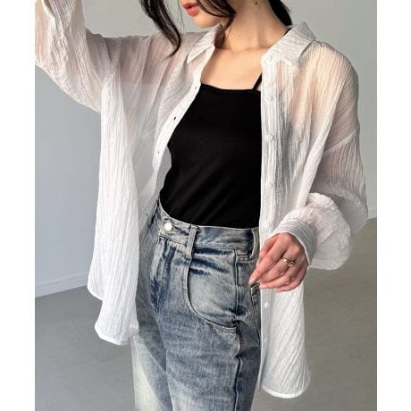 バックレースアップシアーシャツ