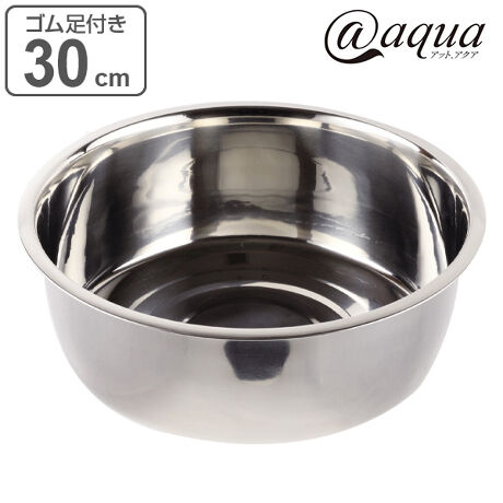 洗い桶 丸型 直径30cm ステンレス製 アットアクア 排水穴なし ゴム脚あり