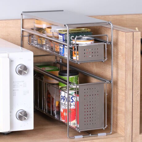 ●整理しやすいスライド式でシンク下をスッキリ整頓できます。