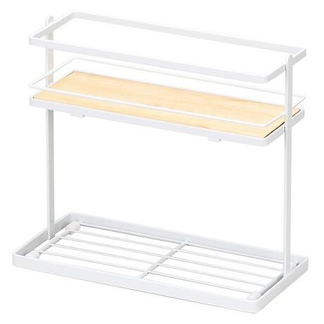 [型番:331347]【デザイン】●金属と木の組み合わせがシンプルで、使いやすいデザインの調味料スタンドです。●よく使う調味料をひとまとめに収納できます。●たくさん置ける2段タイプです。【スペック】サイズ/約幅25.5×奥行12.5×高さ23cm重量/約800g内容量/1個材質/本体:鉄(エポキシ樹脂塗装)木製プレート:天然木(クリアラッカー塗装)すべり止め:シリコーンゴム生産国/中国製耐荷重/上段:約2kg/下段:約2kg