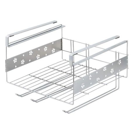 [型番:336036]【デザイン】●戸棚下を有効活用できる、両サイドに華やかな桜模様が施された吊り戸棚下ラックです。●棚下に差し込んで取り付けるだけの簡単設置です。●布巾やキッチンペーパーを掛けられるバーが3本付いているので便利です。●桜柄の切り抜きがキッチンを華やかにしてくれます。【スペック】サイズ/約幅29.3×奥行29.5×高さ21cm重量/約812g内容量/1個材質/本体:スチール(クロムメッキ)クッションゴム:合成ゴム生産国/日本製