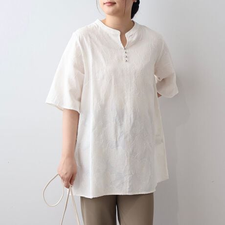 織りで描かれた花模様が美しい、主役級のチュニックブラウスです。