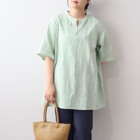 織りで描かれた花模様が美しい、主役級のチュニックブラウスです。
