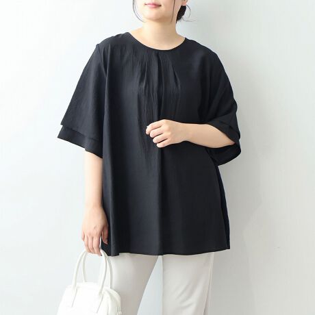 Tシャツ感覚で楽に着られるのに、ブラウスのように華やかなので、普段使いからちょっとしたお出かけまで幅広く活躍します。