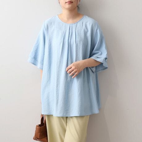Tシャツ感覚で楽に着られるのに、ブラウスのように華やかなので、普段使いからちょっとしたお出かけまで幅広く活躍します。
