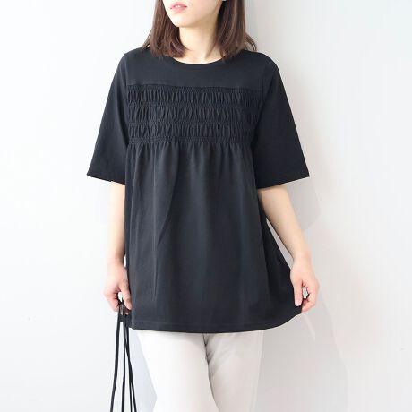【大きいサイズ】ドライ天竺シャーリングチュニック