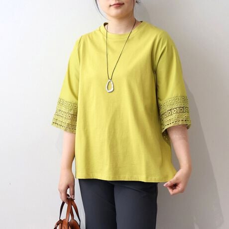 【大きいサイズ】コットン天竺レーススリーブカットソー